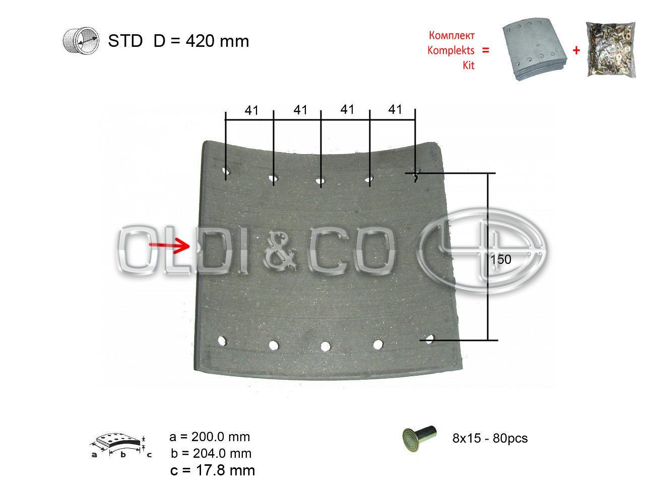 Ширина колодки, мм: 200