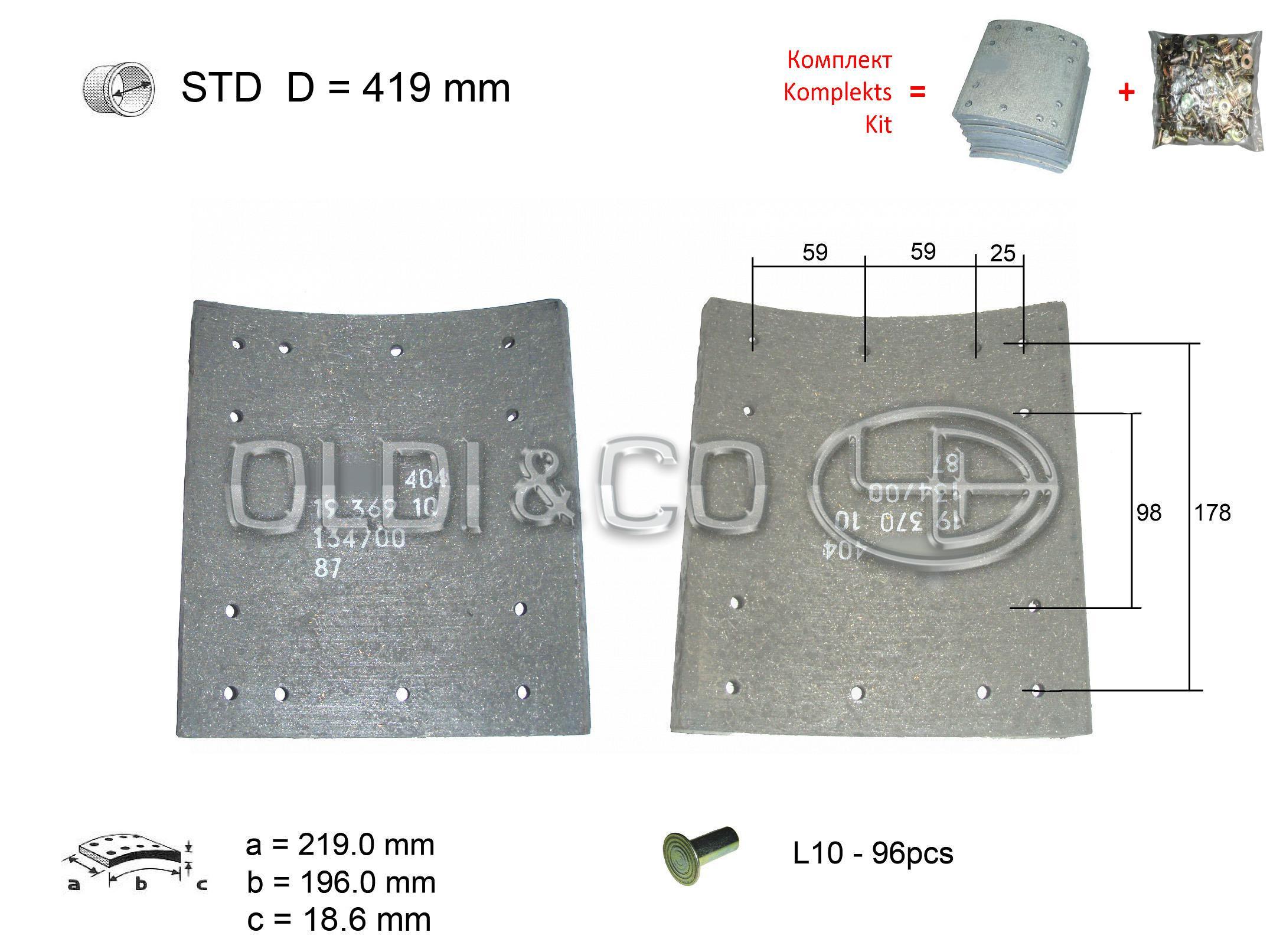 Ширина колодки, мм: 219